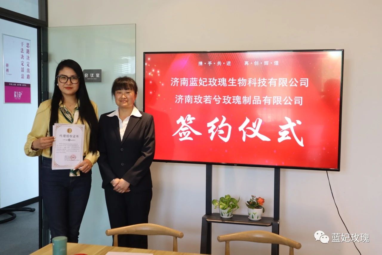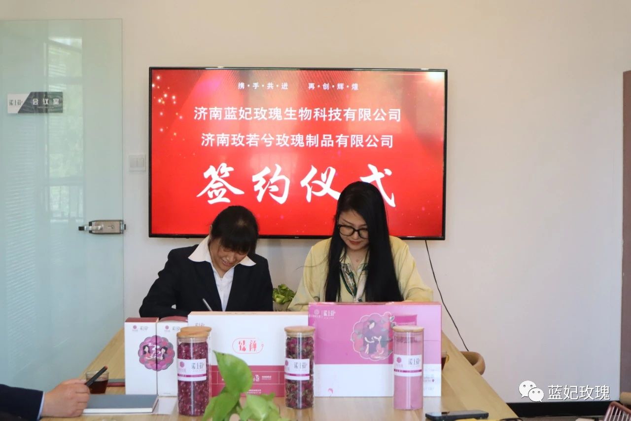 2022年4月16日下午,藍(lán)妃玫瑰與玫若兮玫瑰制品舉行了簽約儀式,為藍(lán)妃玫瑰在以后的平陰市場中,打下堅實(shí)的基礎(chǔ)。