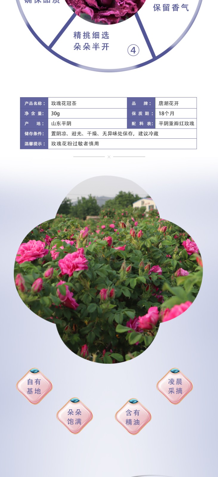 唐潮花開平陰重瓣紅玫瑰玫瑰花冠低溫烘干30g花冠茶