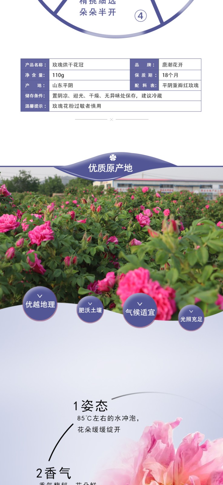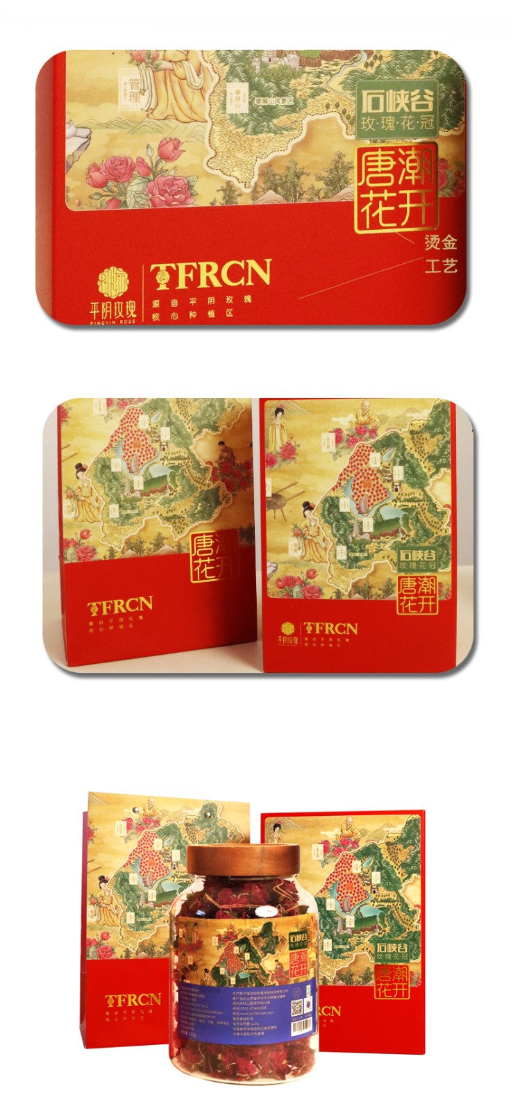 唐潮花開平陰玫瑰花冠茶瓶裝烘干沖泡花茶110g