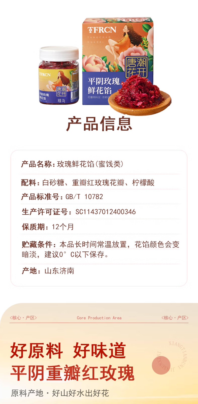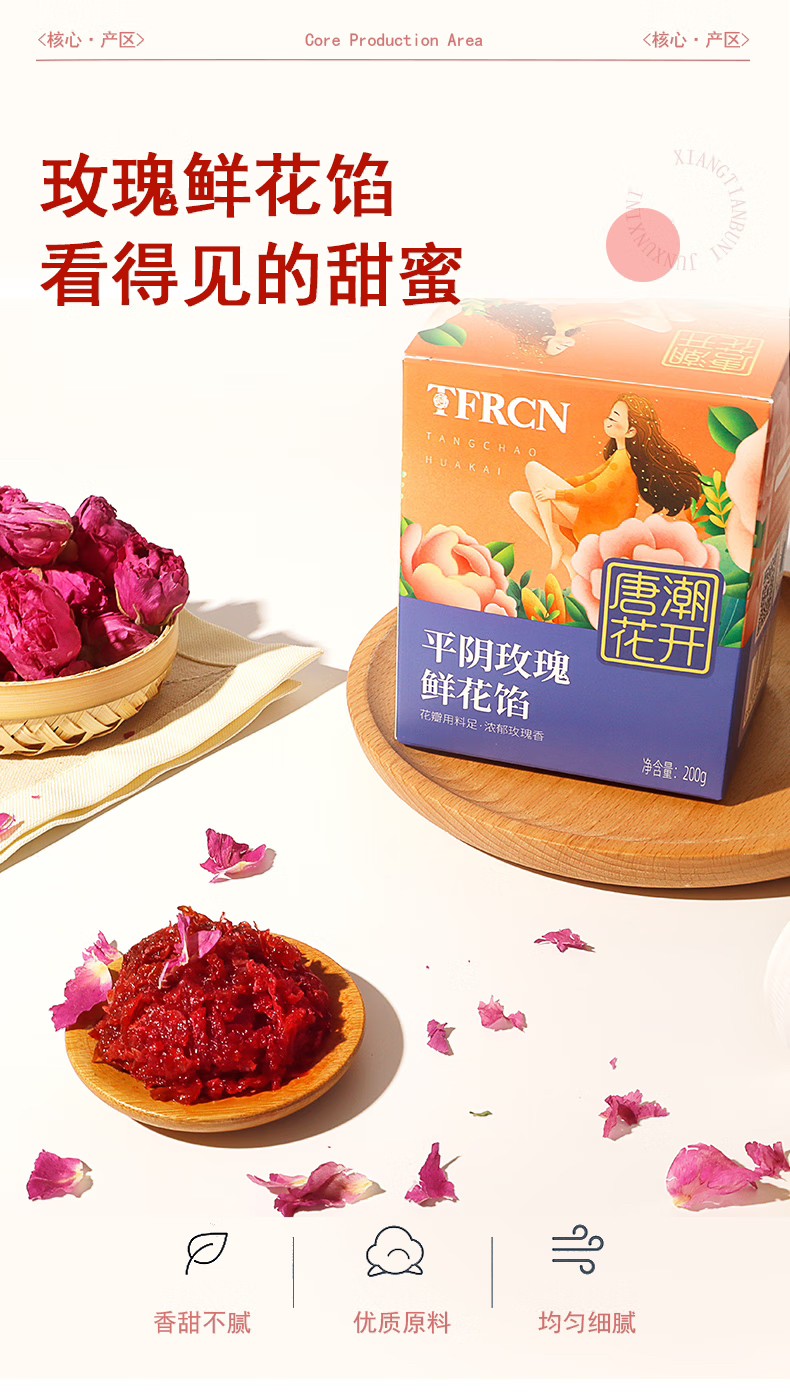 唐潮花開(kāi)食用玫瑰鮮花餡山東平陰特產(chǎn)醇香細(xì)膩200g
