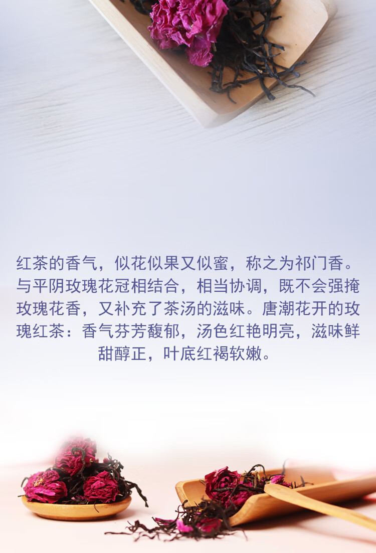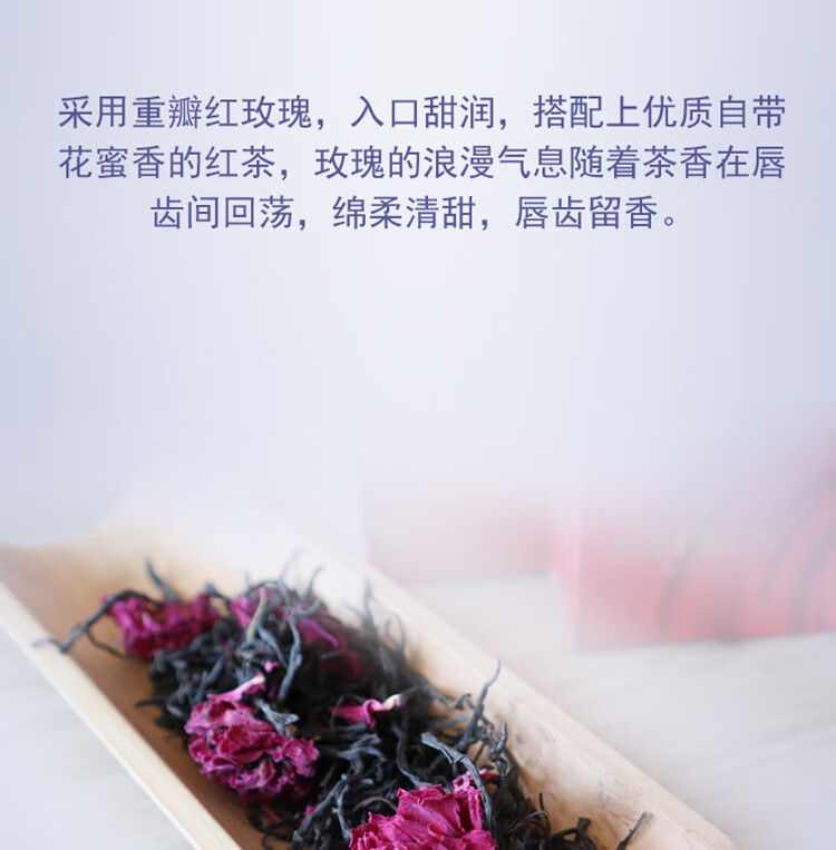 采用平陰重瓣紅玫瑰,入口甜潤,搭配上優(yōu)質(zhì)自帶花蜜香的紅茶,玫瑰的浪漫氣息隨著茶香在唇齒間回蕩,綿柔清...