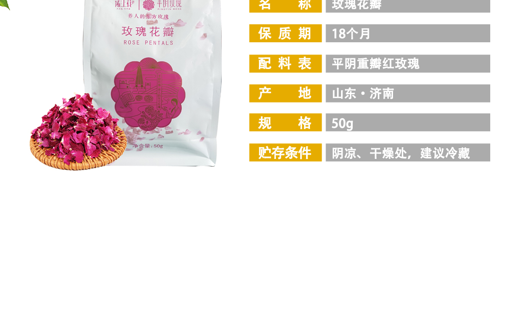 諾上花平陰重瓣紅玫瑰 食品原料 原產(chǎn)地直發(fā)玫瑰花瓣50g